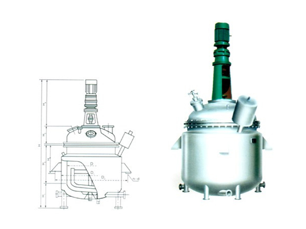 反應釜由鍋體、鍋蓋、攪拌器、電加熱油夾管、支承及傳動裝置、軸封裝置、溢油槽等組成,并配有電加熱棒及測溫、測壓表。